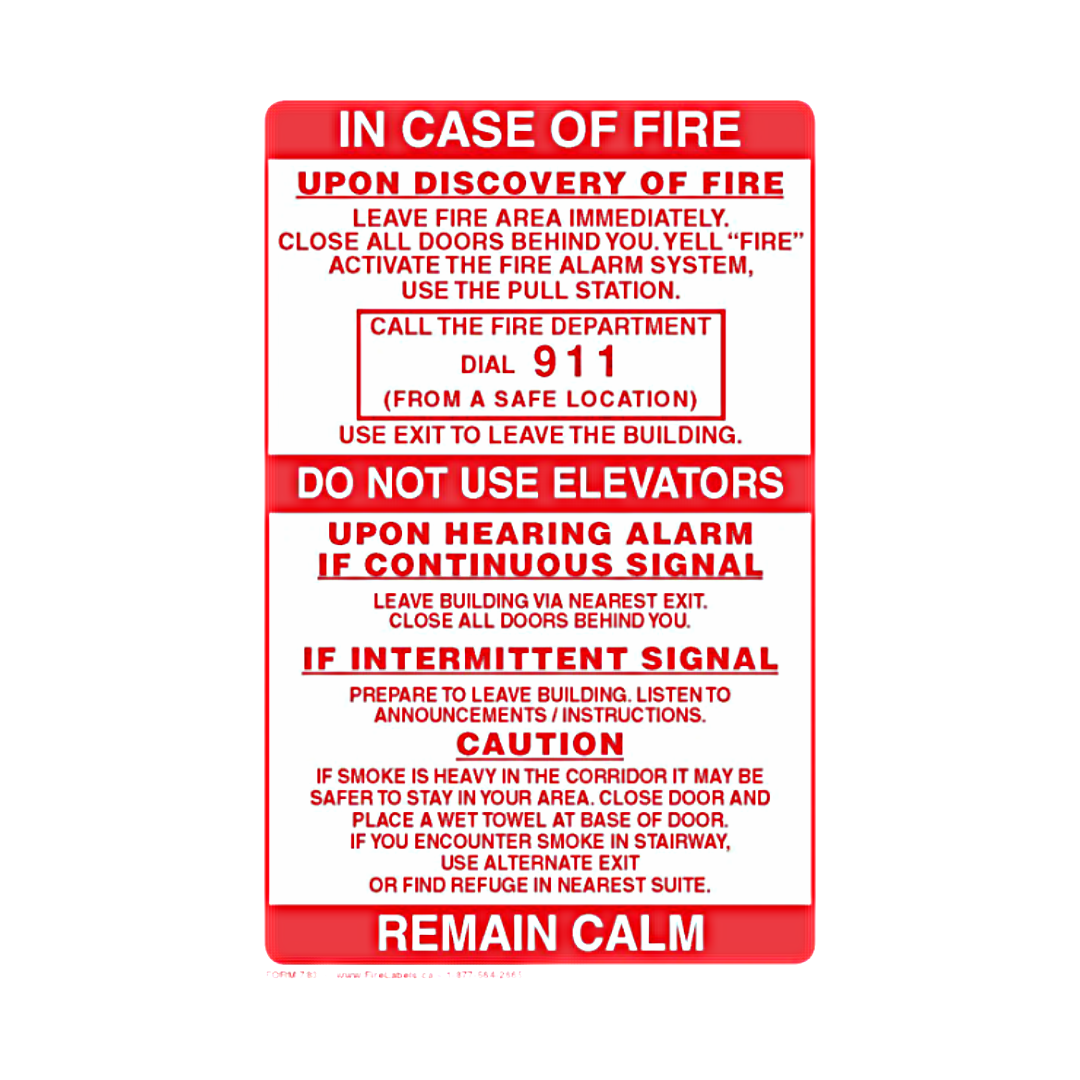 Ensure safety and compliance with this clear and durable “In Case of Fire” 2 stage alarm sign. Designed for use near elevators, it provides essential safety instructions in emergency situations. To be applied above fire alarm pull station.